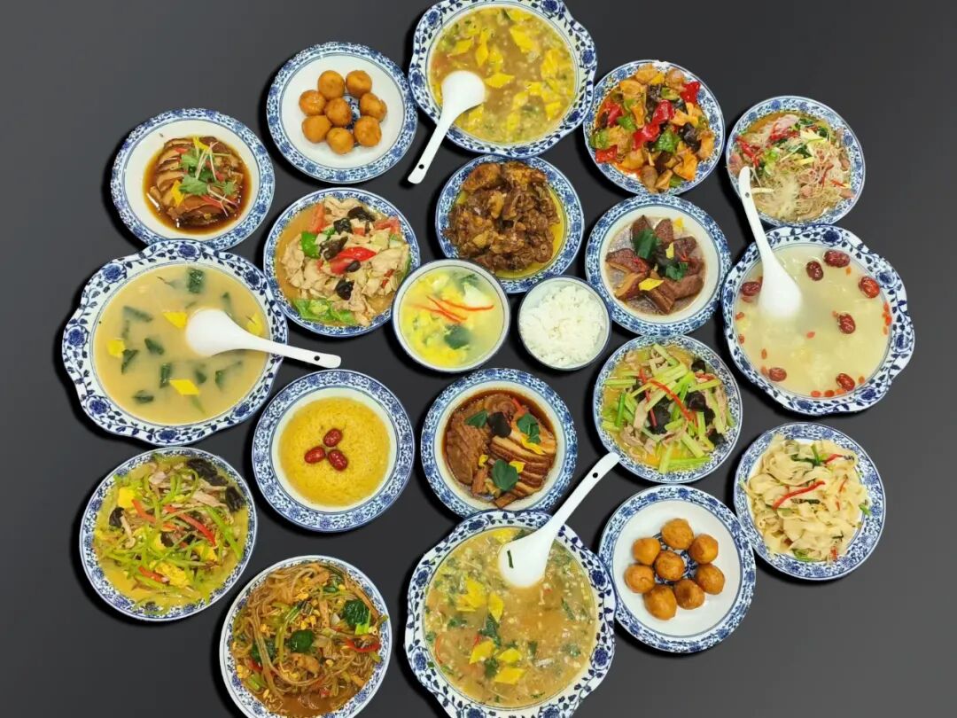 ——所有食材均來自農家田園、綠色土產,葷素、熱涼、湯菜搭配合理,營養(yǎng)豐富。