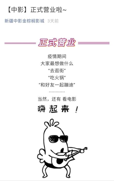 微信公眾號(hào)截圖 新疆中影金棕櫚影城近日開始營業(yè)
