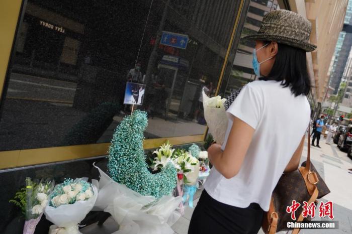 資料圖:2021年4月1日,歌迷和影迷來到香港文華東方酒店外獻上鮮花,擺上遺像,悼念張國榮。 中新社記者 張煒 攝