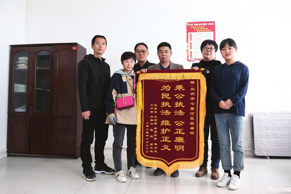 中國甘肅網10月27日訊 據蘭州晚報報道(記者 許沛潔 文/圖) “今天,我們專程過來感謝各位檢察官。你們維護了公平正義,如果沒有檢察院的依法監(jiān)督,我們這8個家庭就要背負287萬元的債務!”這份感謝來自七里河區(qū)檢察院辦理的一起民事審判監(jiān)督系列案件的多名申請人。10月26日,他們將一面錦旗交到了七里河區(qū)檢察院梁德安副檢察長和第四檢察部負責人手中,表達對辦案檢察官的感謝之情。
