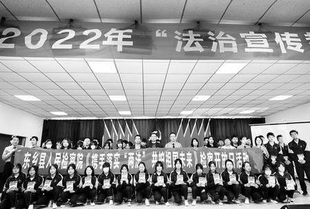 東鄉(xiāng)縣檢察院和民族中學(xué)共同舉辦“攜手落實(shí)‘兩法’共護(hù)祖國未來”檢察開放日宣講活動(dòng)(2022年5月31日拍攝)?!      |鄉(xiāng)縣檢察院供圖