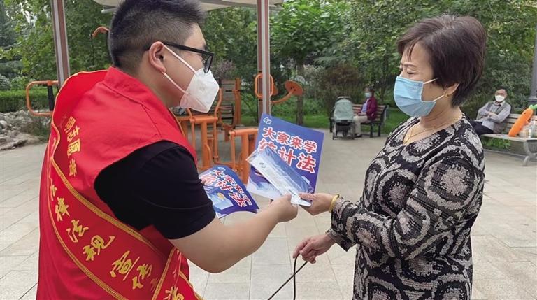 “大爺,了解一下統(tǒng)計法,這和我們老百姓的生活息息相關(guān)。”在欣欣茗園小區(qū)廣場,穿著紅馬甲的志愿者將統(tǒng)計法律法規(guī)宣傳彩頁送到市民手中,把法律意識送進老百姓心中。“以前沒聽說過還有統(tǒng)計法,今天有送法進社區(qū)活動,剛好借這個機會好好了解學習一下。”在小區(qū)廣場遛彎的張大爺一邊看著宣傳彩頁一邊說。