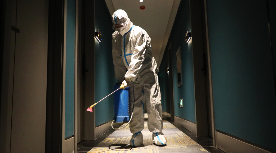 張九夫每天出現(xiàn)在點(diǎn)位的次數(shù)太多了,穿著防護(hù)服的瘦高身影和那標(biāo)志性俯身下去的動(dòng)作,再配上一個(gè)遮住大半邊臉的口罩??匆谎?,大家就知道——九夫來(lái)了。長(zhǎng)時(shí)間的相處,張九夫與戰(zhàn)友們之間多了一分相互了解,他也用獨(dú)有的幽默和關(guān)心消去了戰(zhàn)友們的疲憊。徐洪濤笑著說(shuō):“他每天都和我說(shuō)要每天新學(xué)一道菜,讓我品嘗他的黑暗料理。”完成消殺作業(yè)的同事們說(shuō)起張九夫,一掃疲憊,常常笑得彎下腰。