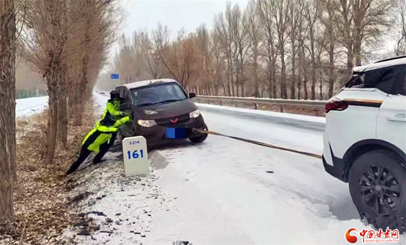 金塔縣公安局交警大隊(duì)民輔警救援被困車輛