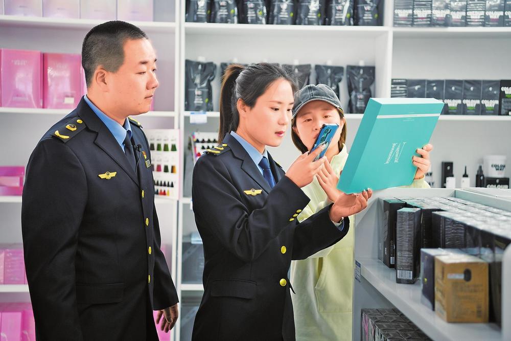 3月12日,在“3·15”國(guó)際消費(fèi)者權(quán)益日來(lái)臨之際,蘭州市市場(chǎng)監(jiān)督管理局配合甘肅省藥品監(jiān)督管理局對(duì)化妝品批發(fā)市場(chǎng)進(jìn)行檢查,指導(dǎo)企業(yè)規(guī)范經(jīng)營(yíng),維護(hù)消費(fèi)者權(quán)益。新甘肅·甘肅法治報(bào)記者王輝攝