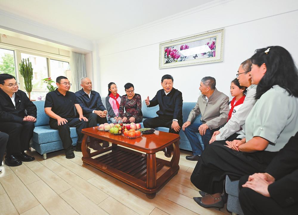 9月10日至13日,中共中央總書(shū)記、國(guó)家主席、中央軍委主席習(xí)近平在甘肅考察。這是11日下午,習(xí)近平在蘭州市安寧區(qū)棗林西社區(qū)考察時(shí),同退休老黨員李宗彪一家人圍坐在一起拉家常。新華社記者燕雁