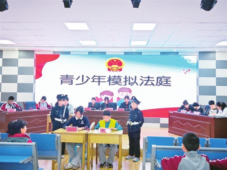 首先,在李青源律師的悉心指導和同學們的踴躍參與下,經(jīng)過前期的認真彩排,同學們以模擬法庭的形式現(xiàn)場模擬了一起因校園欺凌導致的刑事訴訟案件。參與庭審活動的學生們沉浸式、體驗式、互動式參與其中,有序扮演著審判長、公訴人、辯護人等角色?;顒右沧屧趫龅钠渌瑢W認識學習了法庭審判的全過程,身臨其境感受了校園欺凌會產(chǎn)生的嚴重后果,以及法律的威嚴,引導青少年學會用法律保護自己。