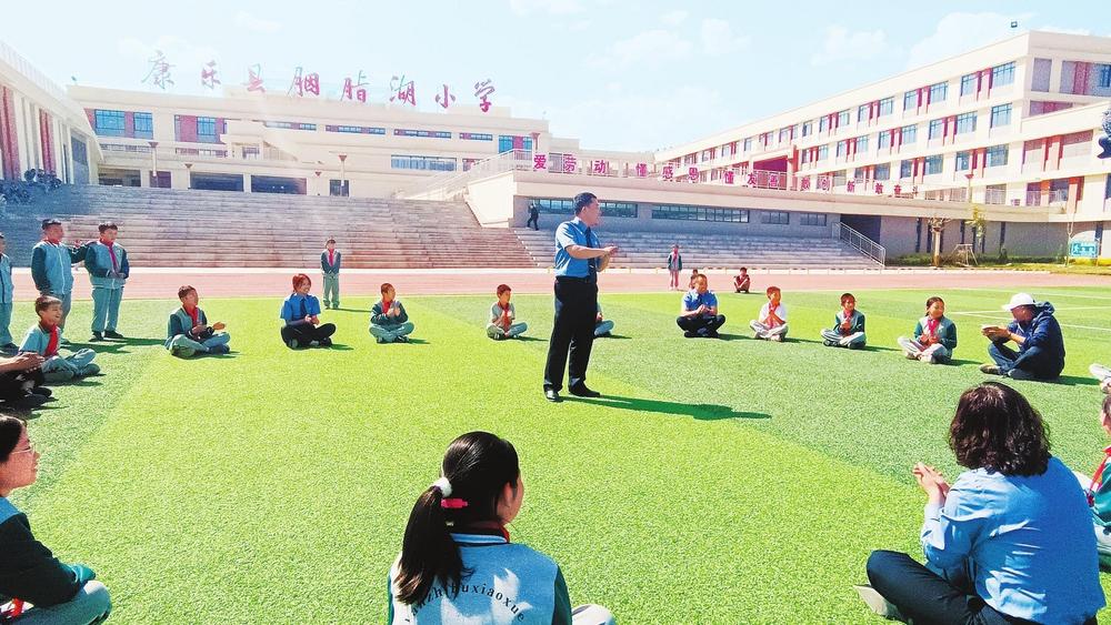 干警和孩子們游戲互動。近日,康樂縣檢察院組織干警走進康樂縣胭脂湖小學,開展法治進校園宣講活動,為未成年人健康成長構(gòu)筑堅實司法屏障,用心用情守護“少年的你”。 新甘肅·甘肅法治報記者陳孝志攝