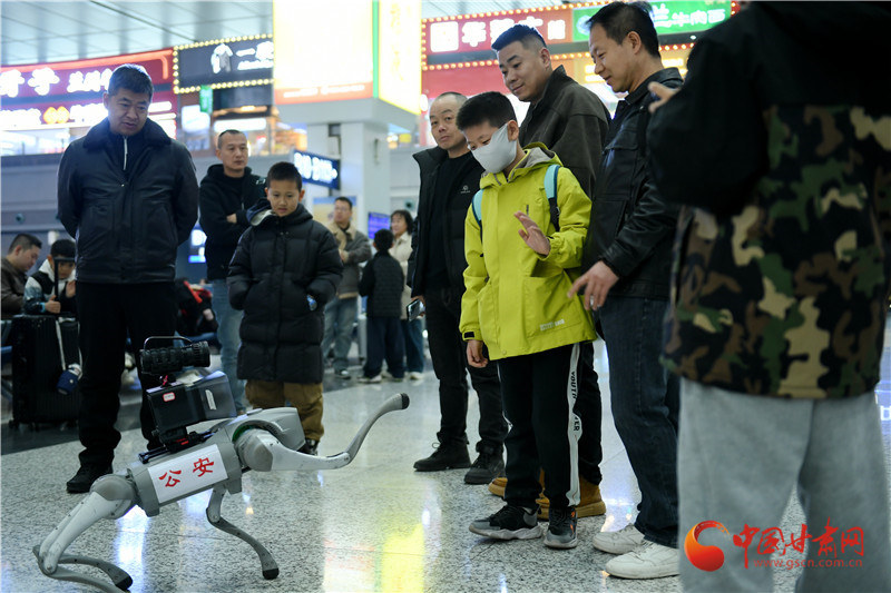 蘭州西站派出所民警利用機器犬開展治安巡邏防范、法治宣傳等各項工作