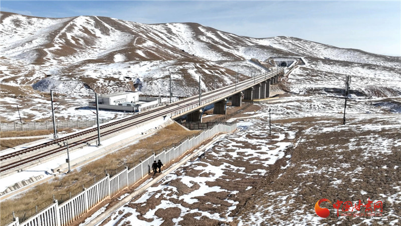 天祝西站派出所民警在護網(wǎng)旁前行,在人跡罕至的高原,他們用日復一日的堅守,守護著列車的飛馳與旅客的歸途