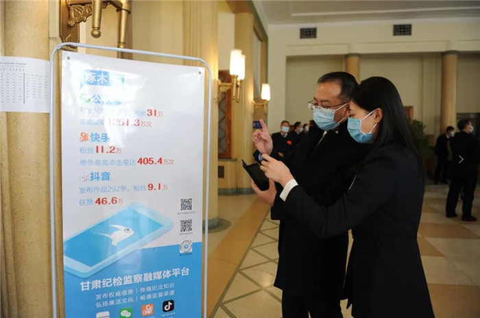 與會(huì)人員紛紛關(guān)注甘肅紀(jì)檢監(jiān)察融媒體平臺(tái)