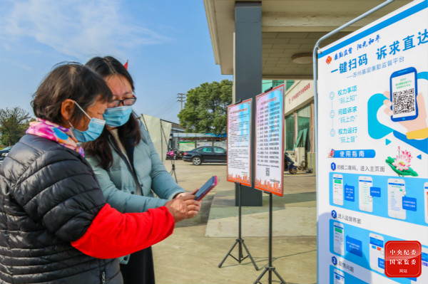 江蘇省張家港市紀(jì)委監(jiān)委聚焦做實監(jiān)督,創(chuàng)新信息化監(jiān)督平臺建設(shè),用“碼上監(jiān)督”推動監(jiān)督下沉、落地見效,維護群眾利益。圖為該市紀(jì)檢監(jiān)察干部在南豐鎮(zhèn)永聯(lián)村指導(dǎo)群眾掃碼使用基層廉勤監(jiān)督平臺。(江蘇省張家港市紀(jì)委監(jiān)委 供羅燕 攝)