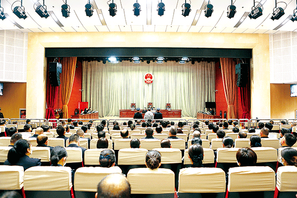 圖為4月21日,蘭州市中級人民法院開庭審理柳豐德受賄、行賄案。 (蘭州市中級人民法院供圖)
