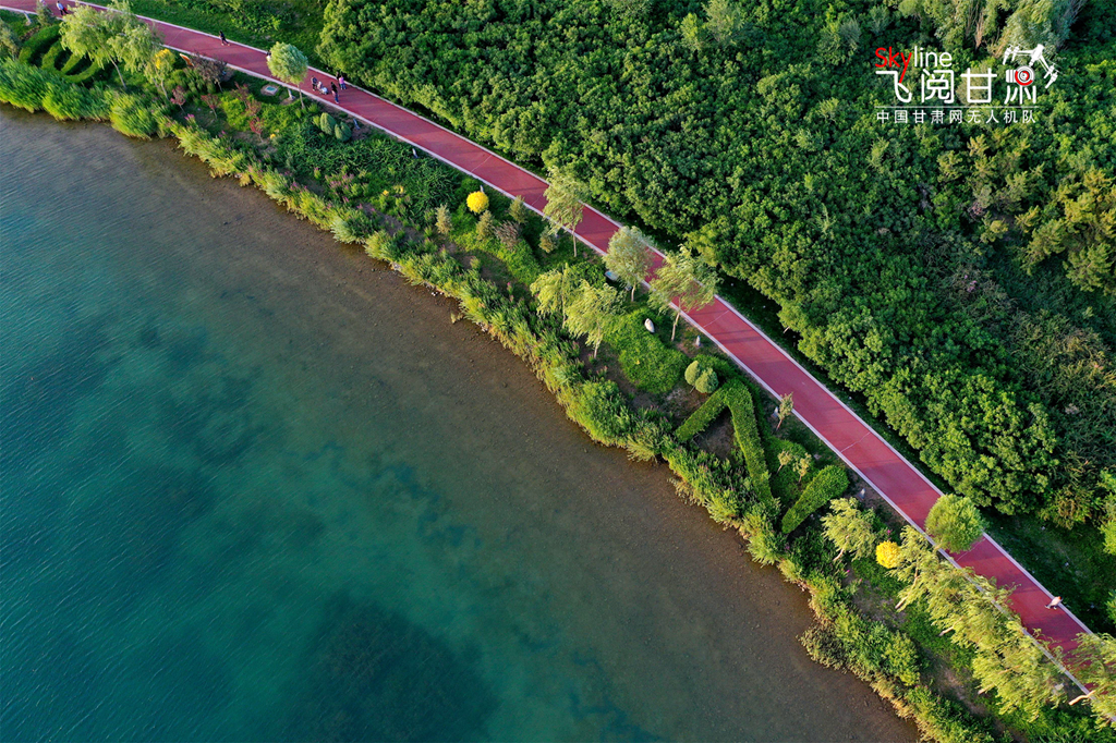 近日,夕陽下的甘肅省張掖市蘆水灣生態(tài)景區(qū)湖水湛藍(lán),草木翠綠,景色宜人。蘆水灣生態(tài)景區(qū)位于張掖濱河新區(qū),占地4500畝,其中水域面積2260畝,綠化林地1790畝,2018年評為國家4A級景區(qū),被譽(yù)為張掖城市的“后花園”和“加濕器”。