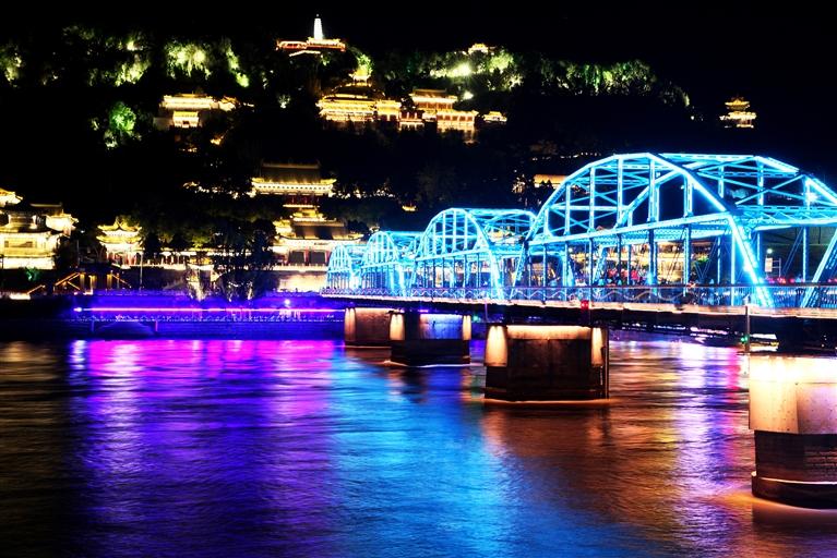 中國甘肅網(wǎng)5月24日訊 據(jù)蘭州日報(bào)報(bào)道記者 張建平 攝)為迎接甘肅省第十四次黨代會勝利召開,我市在標(biāo)志性橋梁、廣場及樓體精心組織以“蘭州藍(lán)”為主題的燈光秀,營造濃厚的喜慶氛圍。中山橋、黃河樓等處燈光展示“蘭州藍(lán)”,這顯示了全市上下守護(hù)碧水藍(lán)天的信心,更昭示著全市黨員干部堅(jiān)定垂范清廉蘭州,共建政治生態(tài)“蘭州藍(lán)”的決心。