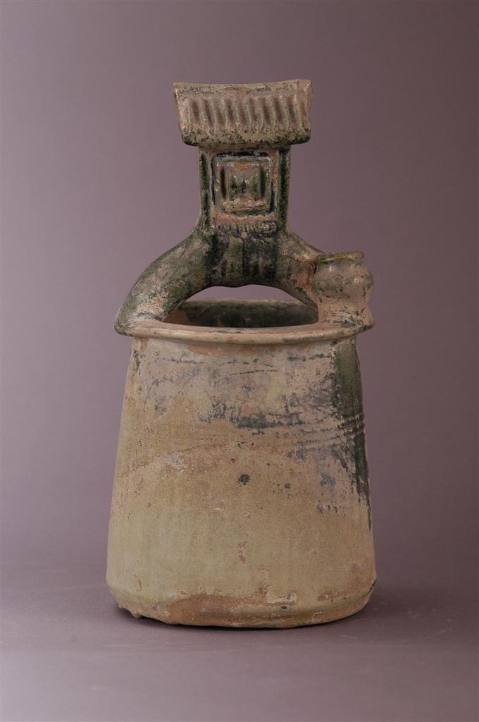 其中,綠釉陶井高26.2厘米,口9.4厘米,底12.5厘米,為蘭州市博物館館藏三級文物。兩漢時期陶井作為漢代模型明器的重要組成部分,普遍見于兩漢時期的墓葬中。漢代推崇儒家思想,以“孝”治國,提倡厚葬,“事死如事生”的喪葬觀念,導致在兩漢墓葬中多隨葬陶井模型明器,是模仿現(xiàn)實中的水井設施,將之做成模型埋入墓中供逝者享用。漢代,水井設施被廣泛地使用,考古發(fā)現(xiàn)的漢代居住、農(nóng)業(yè)及手工業(yè)遺址中出土有大量的水井遺跡。