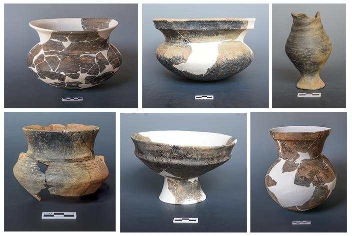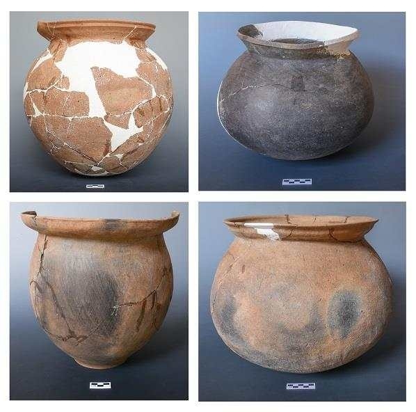 古城村遺址面積約4.2萬平方米,現(xiàn)存的貝丘堆積最厚處達(dá)6.5米,由大量尾部被敲破的螺螄殼與灰土層交替堆疊形成。碳十四測(cè)定年代為距今3600至2500年,約相當(dāng)于中原地區(qū)的商代至兩周時(shí)期。商代遺存可分為早晚兩段,早段發(fā)現(xiàn)保存完整的橢圓形環(huán)壕聚落,由中心臺(tái)地、外圍環(huán)壕和護(hù)坡組成,中心臺(tái)地面積約27000平方米,環(huán)壕和護(hù)坡周長(zhǎng)約600米,這種聚落格局一直延續(xù)至兩周時(shí)期。商代晚段發(fā)現(xiàn)一批土坑墓和甕棺葬。兩周時(shí)期的遺存以房址、螺殼堆、灰燼、活動(dòng)面等居住類遺跡為主,房址多為方形半地穴式。出土青銅器、陶器、玉器、石器、骨器、木器等文物4000余件。
