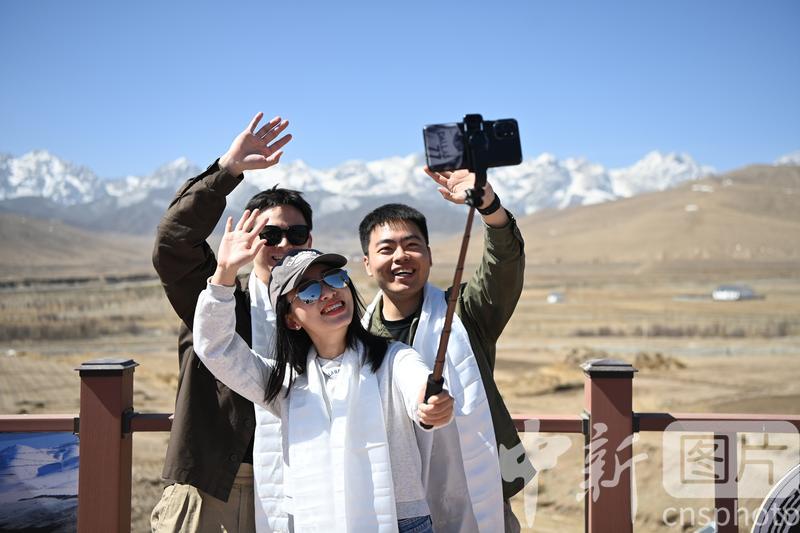 4月16日,甘肅省武威市天祝藏族自治縣,學生們在景區(qū)自拍留影。