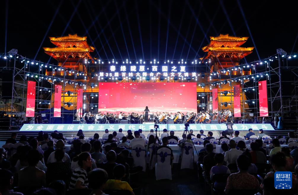 7月31日,觀眾在觀看第三十五屆“春綠隴原·西固之夏”百姓大舞臺(tái)廣場(chǎng)文藝調(diào)演。新華社記者 方欣 攝