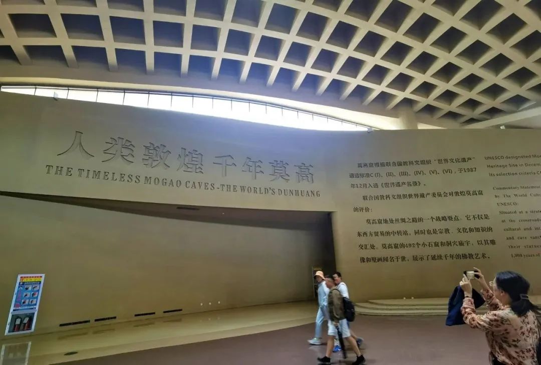 觀眾參觀敦煌石窟文物保護(hù)研究陳列中心