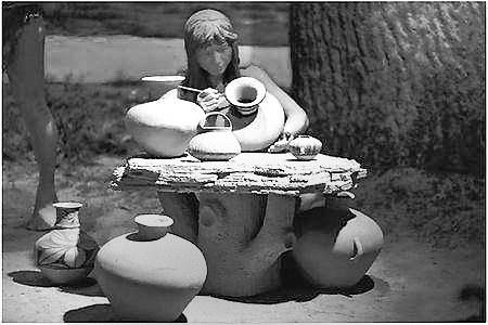 大地灣博物館展廳中先民制作彩陶的場景。