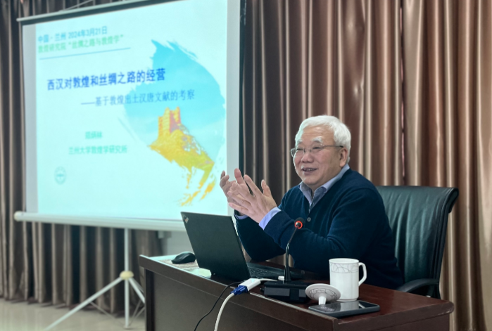 2024年3月21日下午,蘭州大學(xué)鄭炳林教授應(yīng)邀在“絲綢之路與敦煌學(xué)”系列公益學(xué)術(shù)講座主講《兩漢對敦煌和絲綢之路的經(jīng)營》。講座由敦煌研究院敦煌文獻(xiàn)研究所主辦,趙曉星研究員主持,在蘭州分院舉行。我院專家學(xué)者,蘭州大學(xué)、西北師范大學(xué)、西北民族大學(xué)師生,及敦煌學(xué)愛好者50余人現(xiàn)場參加了此次學(xué)術(shù)活動。