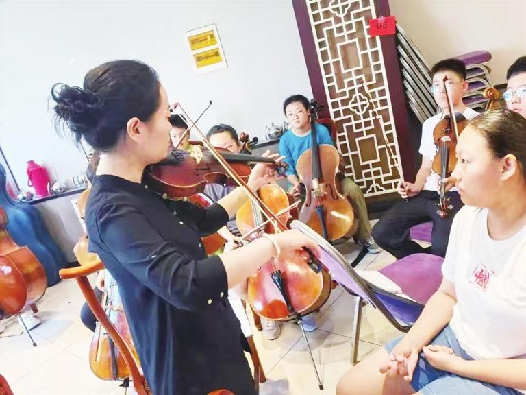 中國甘肅網(wǎng)8月26日訊 據(jù)(蘭州晨報報道 奔流新聞·蘭州晨報記者 裴強(qiáng))近日,教育部白名單競賽“2023-2024學(xué)年全國青少年音樂素養(yǎng)大賽”全國總決賽在山東省濟(jì)南市閉幕。蘭州市少年宮交響樂團(tuán)弦樂分團(tuán)的20名學(xué)員經(jīng)過初賽、復(fù)賽層層選拔,以省賽一等獎佳績代表蘭州市參加“2023-2024學(xué)年全國青少年音樂素養(yǎng)大賽”決賽,最終斬獲演奏類西洋樂團(tuán)合奏賽項中學(xué)組三等獎。圖為學(xué)員們在排練