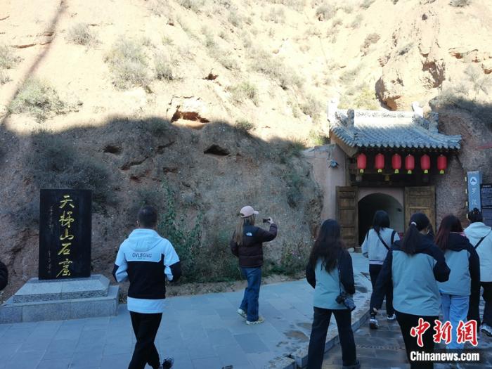 資料圖:位于甘肅武威市涼州區(qū)境內的天梯山石窟吸引游人參觀。田鵬鶴攝