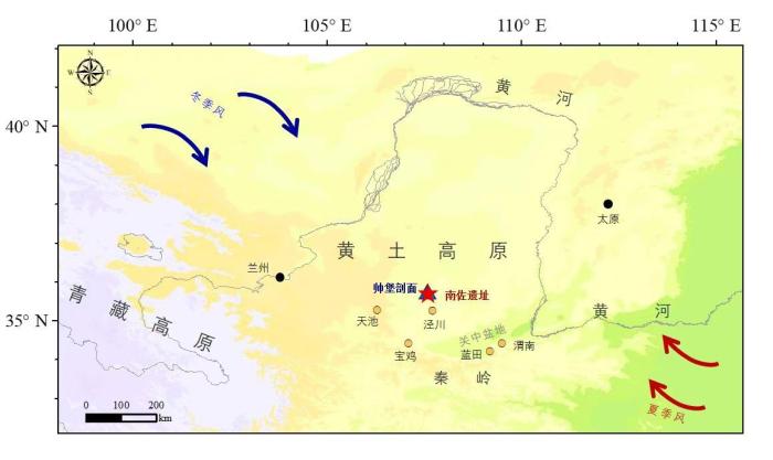 南佐遺址和帥堡剖面地理位置及所受季風(fēng)影響示意圖。韓建業(yè)供圖