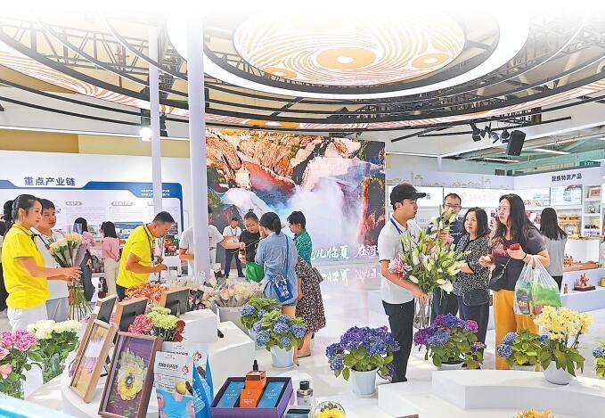 張掖館內(nèi),各類特色農(nóng)產(chǎn)品受到人們的青睞。 新甘肅·甘肅日報記者 馬伊星