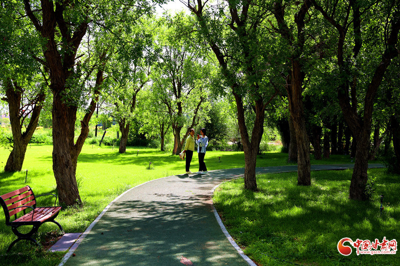 7月8日,雨后的臨澤小城初晴,天空湛藍(lán)。棗鄉(xiāng)風(fēng)情園的睡蓮池畔,成為市民和游客的熱門去處。古亭倒影在平靜的池水中,與盛開的睡蓮相映成趣。市民游客坐在池邊長(zhǎng)椅上閑聊,鍛煉的人們也沉浸在這愜意的氛圍中。