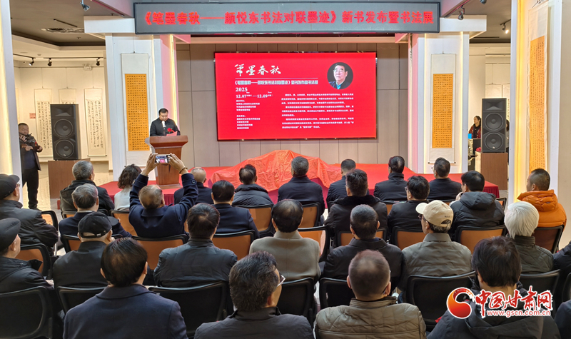 中國甘肅網(wǎng)12月7日訊(西北角·中國甘肅網(wǎng)記者 任磊)12月7日上午,《筆墨春秋—顏悅東書法對聯(lián)墨跡》新書發(fā)布暨書法展在甘肅省藝術館啟幕。本次展覽集中呈現(xiàn)顏悅東近年來創(chuàng)作的120幅書法作品,同期發(fā)布的新書收錄楹聯(lián)作品330副,系統(tǒng)呈現(xiàn)了作者在書法領域的藝術探索與創(chuàng)作成果。