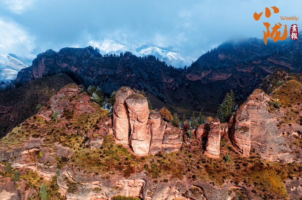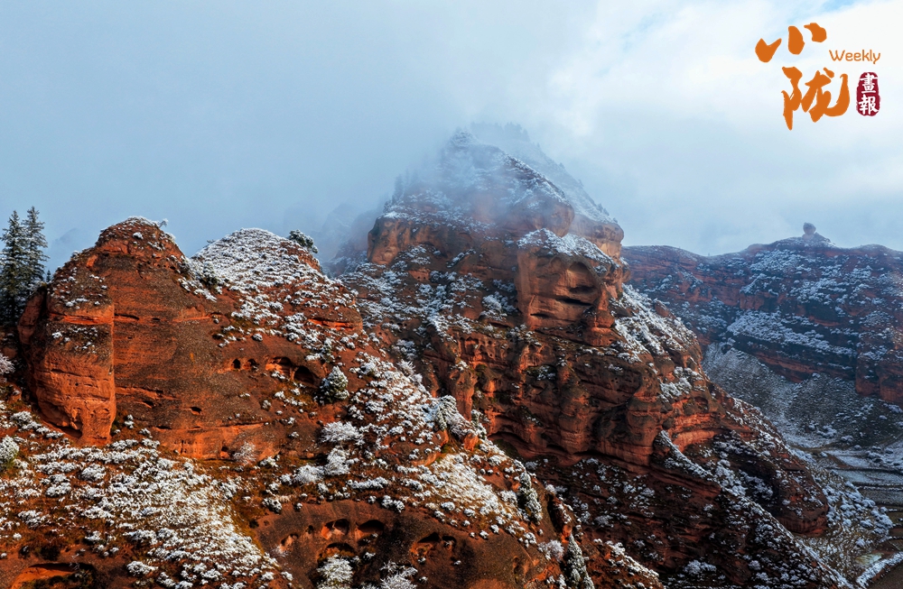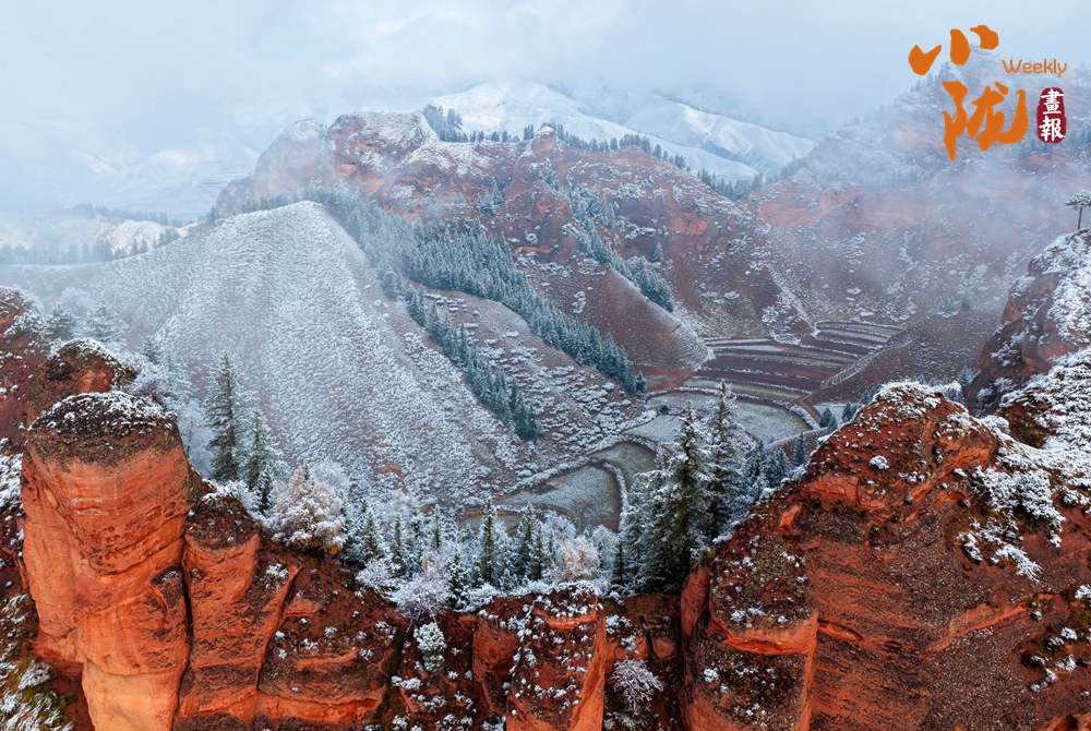 雪落天祝,本康丹霞展露出別樣景致。赭紅巖壁披覆皚皚素雪,熾烈地貌與清冽冬意在此相逢,暈染出一片紅白交織的視覺交響。