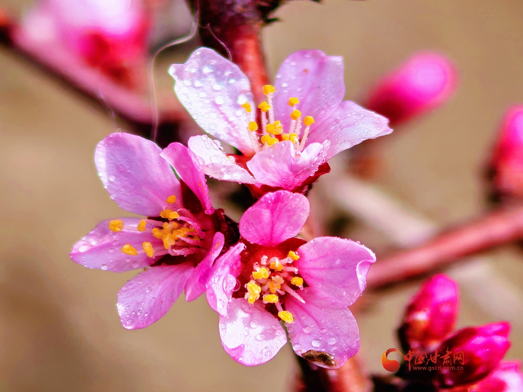 蒙古扁桃花開 祁連春意漸濃