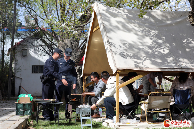 執(zhí)勤民警在景區(qū)露營(yíng)地開(kāi)展安全檢查,守護(hù)游客休閑安全