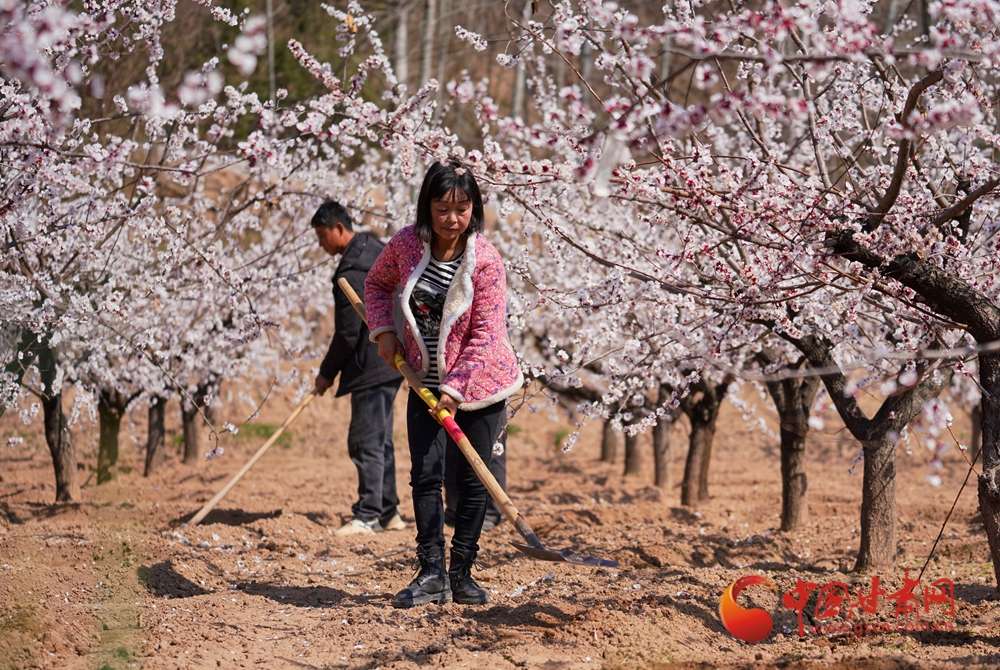 春日的田野里,耕耘的身影與爛漫花色相映,滿是鮮活的生機(jī)與希望