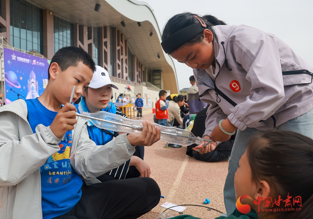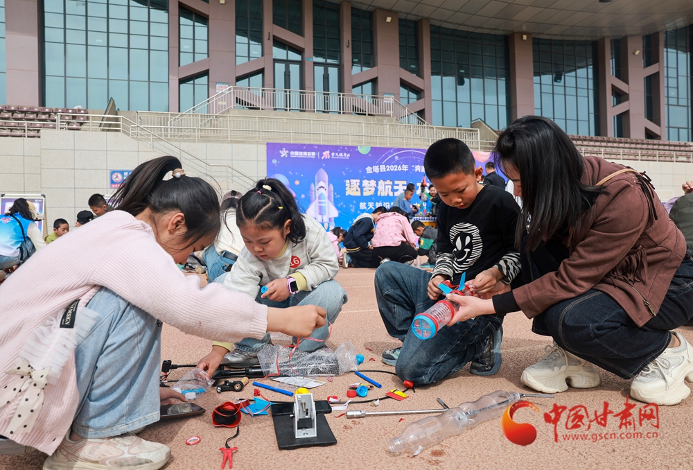 4月25日,酒泉市金塔縣2026年“奔跑吧·少年”航天知識科普暨水火箭競技大賽舉行?;顒蝇F(xiàn)場,學(xué)生在科普老師指導(dǎo)下開展水火箭組裝、調(diào)試,沉浸式參與航天科普活動。