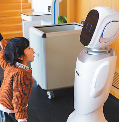 小讀者與館內的機器人交流。闕明芬 攝(人民視覺)