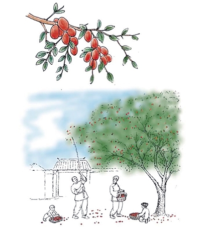 《果兒小典》是一本讀起來(lái)輕松,又別有一番滋味的書。隨著人們生活水平的提高,水果干果店鋪隨處可見,店里的果子更是天南海北,無(wú)所不有。南北半球的水果干果薈萃一堂,讓人產(chǎn)生了一種果樹永不休息、隨手可得的錯(cuò)覺。什么才是果子帶給我們的正常感覺呢?那應(yīng)該是一同經(jīng)歷光陰荏苒,春華秋實(shí),經(jīng)過(guò)漫長(zhǎng)等待之后,還要付出體力才能達(dá)成的相逢,以及由此帶來(lái)的喜悅。在憂思家國(guó)的杜甫筆下,是“庭前八月梨棗熟,一日上樹能千回”,更帶著一種少年輕狂的沖動(dòng)和興奮??梢哉f(shuō),果子正因?yàn)榧耐兄覀兊那楦校兊脛e有滋味。