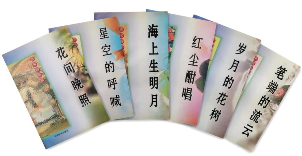 這套書(shū)初版的名字也讓我至今喜歡,《星空的吶喊——中國(guó)現(xiàn)代詩(shī)品讀》《筆端的流云——中國(guó)現(xiàn)代美文品讀》《紅塵酣唱——元曲品讀》《海上生明月——唐宋詩(shī)品讀》《花間晚照——唐宋詞品讀》《歲月的花樹(shù)——中國(guó)古代美文品讀》,這些富有詩(shī)情畫(huà)意的書(shū)名,既是對(duì)選材主題的精準(zhǔn)點(diǎn)睛,也是對(duì)文章精神的生動(dòng)概括,常常讓我有身未動(dòng)心已遠(yuǎn)的沉醉。在我以后的編輯生涯里,這些書(shū)名都曾經(jīng)是我心目中的標(biāo)準(zhǔn)范式。