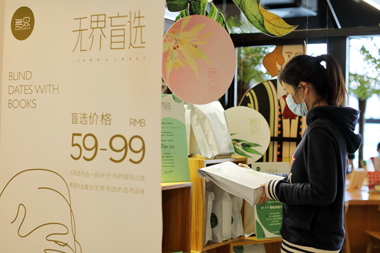 在無界書店,女孩KK買了文學(xué)類的盲選:“之前買書總喜歡看書店暢銷榜或者朋友推薦,很多都是暢銷書。這次買的盲選,里面是2本沒聽過的小說,有一本已經(jīng)在看了,真的是一邊擦眼淚一邊看,書中寫的生老病死,投射到生活,讓我無法不聯(lián)想到自己。”