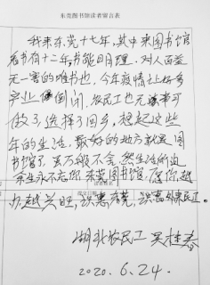 吳桂春給東莞圖書(shū)館的留言。