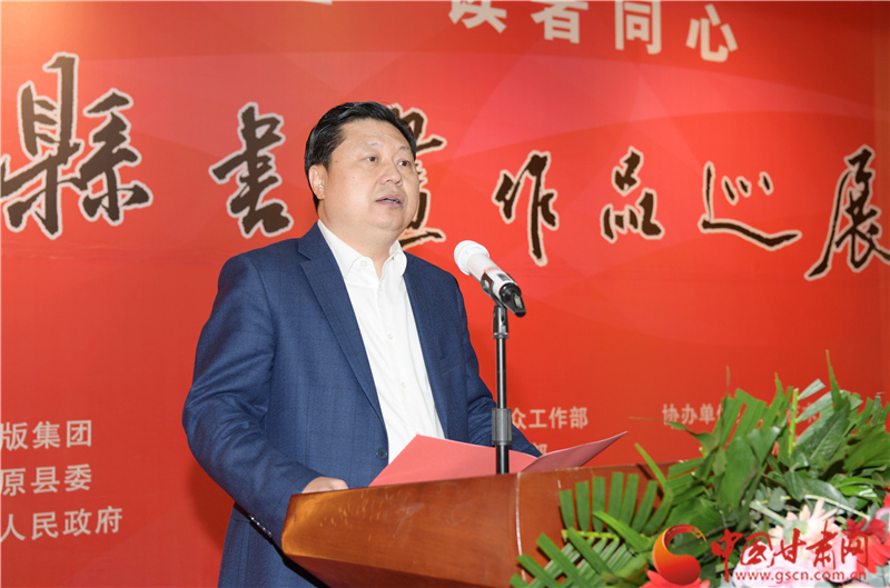 劉永升在致辭中說,鎮(zhèn)原是中國書法之鄉(xiāng),讀者是甘肅文化名片,企縣因扶貧而結緣,因文化而牽手。自2017年定點幫扶鎮(zhèn)原以來,讀者出版集團著力實施了一批“看得見、摸得著、留得下、有成效”的好項目,探索出一條富有“讀者”特色的幫扶路子。特別是立足文化企業(yè)定位,堅持扶智扶志,通過開展勞動技能培訓、幫助改善教育條件、推介宣傳地方資源、建設“讀者鄉(xiāng)村文化驛站”等一系列卓有成效的工作,切實打好“文化扶貧”牌,既堅定了廣大群眾戰(zhàn)勝貧困的信心和決心,更激發(fā)了貧困群眾依靠雙手、勤勞致富的積極性、主動性。此次與鎮(zhèn)原縣聯合舉辦書畫巡展,是開展文化扶貧、助力書香社會建設的務實之舉,也是提升“文化鎮(zhèn)原”影響力、加快地方文化產業(yè)發(fā)展的積極行動,更是提高貧困群眾文化素質、振奮群眾精神風貌的重要舉措。