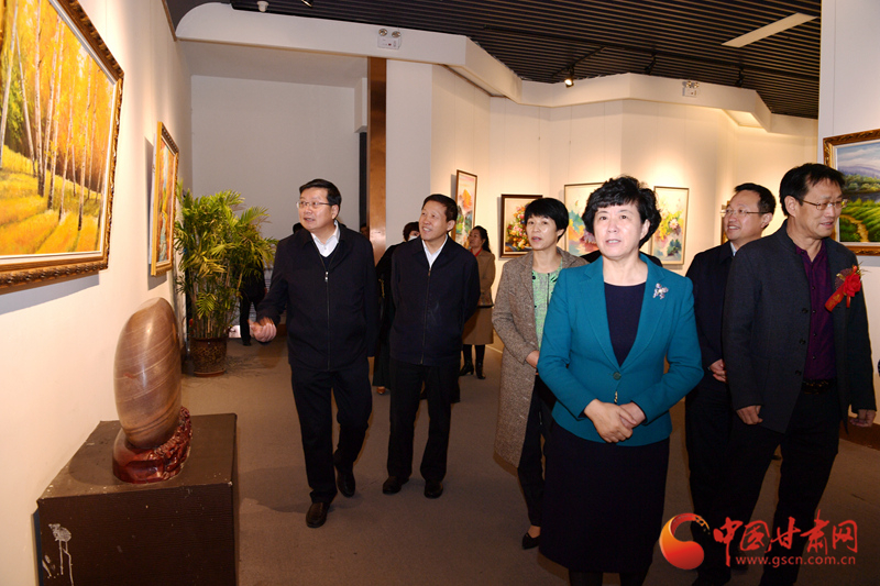 省委宣傳部、省文明辦、省直機關工委、省國資委、省文旅廳、省文史館、省文聯、省扶貧辦、省人社廳和定點幫扶鎮(zhèn)原的讀者出版集團等省直部門負責人,鎮(zhèn)原縣委副書記張笑陽,縣委常委、宣傳部長賈翠艷,知名書畫家、慶陽籍在蘭各界人士共計600余人參觀展覽。