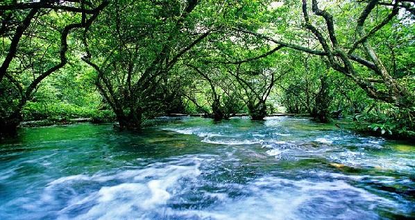 “這溪河哪里來的?”布依漢子對我邊點頭邊自豪地說,“對外來客人,我們時常說,是從石縫里冒出來的,是從泉眼里淌出來的,是從林中湖泊里漫進(jìn)山坡泥巴中的。故而,森林外頭哪怕是連天大太陽,茂蘭森林里仍然是像這會兒一樣涼爽。太陽一落坡,水氣、潮氣、陰氣一起襲來,還得趕快離開林子。”