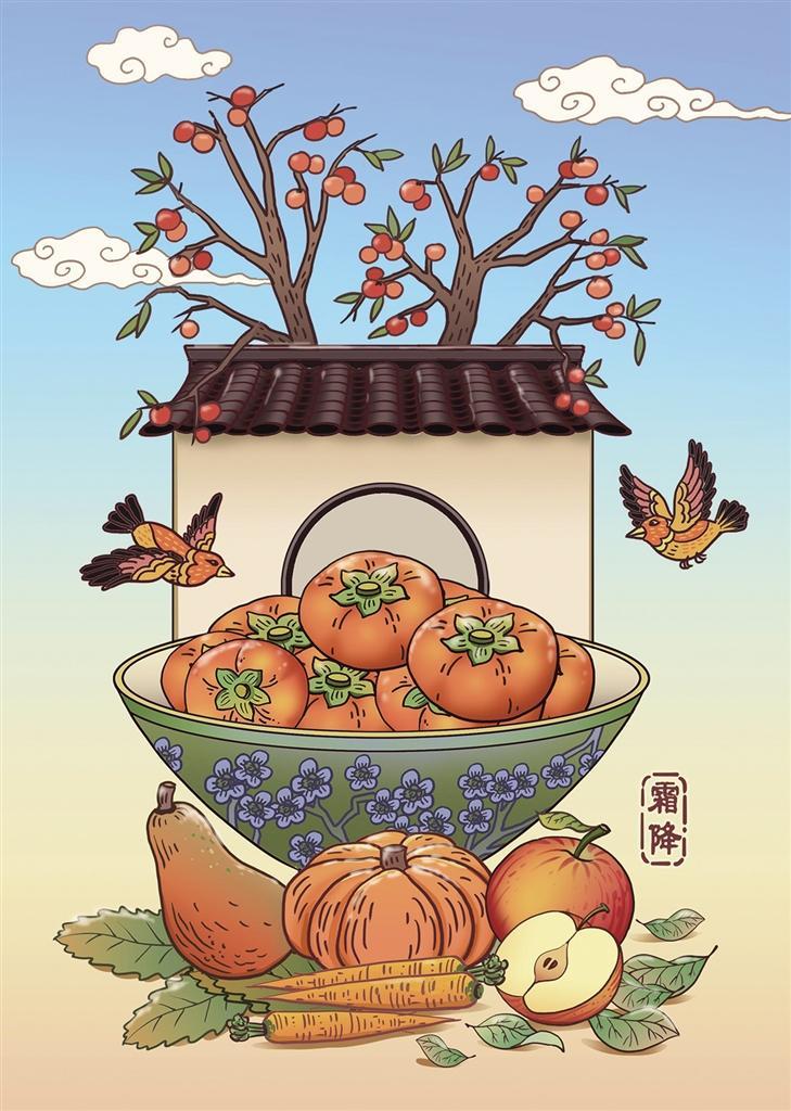 “天氣也如花語(yǔ)一般,有著未約定卻俗成的含義。”宋英杰對(duì)霜降節(jié)氣的解讀十分生動(dòng):“‘秋風(fēng)蕭瑟天氣涼,草木搖落露為霜。’霜降物候,草木黃落,蟄蟲俯,該飄零的飄零,該潛藏的潛藏。但霜色意濃,秋之,反倒是秋季最多彩的時(shí)期。”