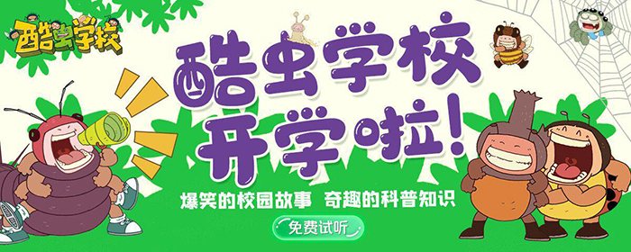 根據(jù)原創(chuàng)昆蟲科普知識爆笑校園漫畫改編的《酷蟲學校科普有聲故事》,以爆笑幽默的校園故事、新奇有趣的科普知識、廣播劇標準的精心制作等特點,激發(fā)小讀者對大自然的熱愛,建立生態(tài)文明的宏觀觀念。