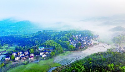 一些網(wǎng)絡小說作家善于描寫深幽、靜謐的田園風光,使之成為年輕人通往舒暢精神世界的通道。圖為江西省九江市都昌縣北山鄉(xiāng)跑馬巷村風情,郁郁蔥蔥,自然閑適,令人向往。傅建斌攝/光明圖片