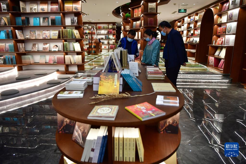 讀者在敦煌書局挑選書籍(4月21日攝)。新華社記者 杜哲宇 攝