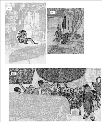 請看圖一,那是一個大叔,他坐在大樹下休息?!肚迕魃虾訄D》我看了無數(shù)次,可是每次看到這里,我都會留心去看他一眼,仿佛大叔是我多年的老友。畫這樣一個人物有什么意義?也許沒有什么意義。張擇端畫這個大叔,也許只是因為他曾經(jīng)真的見過這樣一個人。